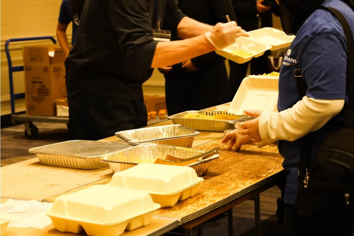 Attendees volunteer for the Little Angels Foundation, a St. Louis-based nonprofit providing meals for refugee, immigrant and unhoused communities. Packed food was distributed near St. Patrick Center, an organization offering assistance programs for individuals experiencing homelessness.